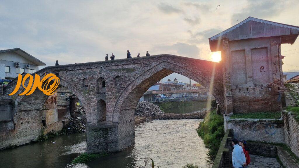 این پل تاریخی، با دو دهانه فراخ و به ارتفاع ۳۷ متر طول، بهنحوی ساخته شده بود که در زمان پرآبی رودخانه، کشتیهای کوچک از آن عبور میکردند. پل خشتی، نماد شهر لنگرود بوده و در سال ۱۳۵۱ در فهرست آثار ملی ثبت شده است.