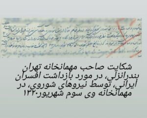 این افراد را که حدود ۳۰ نفر میشدند بهسرعت به مهمانخانهی تهران که در مرکز شهر قرار داشت، منتقل کردند؛ جایی که تحت مراقبت و بازداشت نیروهای شوروی قرار گرفتند. مهمانخانهی تهران که تا دیروز محلی برای تفریح اهالی و اقامت مسافران بود، اکنون به محل نگهداری بازداشتشدگان تبدیل شده بود.
