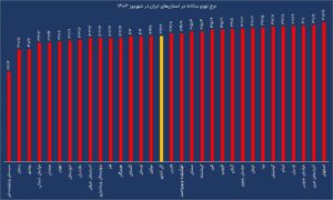 تورم گیلان هم ۳۶.۱ درصد عنوان شده که این تورم استان را جزء ده استان با تورم بالا در کشور قرار داده است.