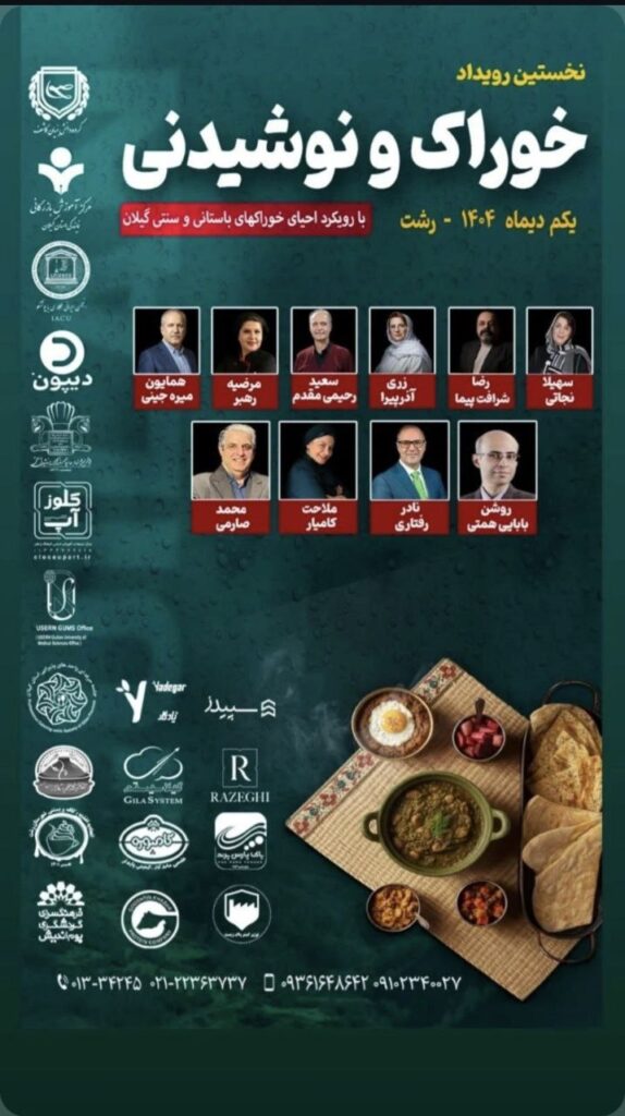 در ادامه این رویداد، روشن بابایی همتی، رئیس کمیته گردشگری انجمن مدیریت کسب و کار ایران، مشاور سرمایهگذاری گردشگری و دهکدههای سلامت، مدیر کمیته ثبت جهانی رشت در شبکه شهرهای خلاق بونسکو، با پرداختن به خوراکهای باستانی و سنتی گیلان، بر اهمیت تاریخ در شناخت هویت غذایی امروز تاکید کرد و با اشاره به دیدگاه بقراط، “بکوش غذای تو اولین داروی تو باشد”، غذا را نخستین عامل سلامت انسان دانست.