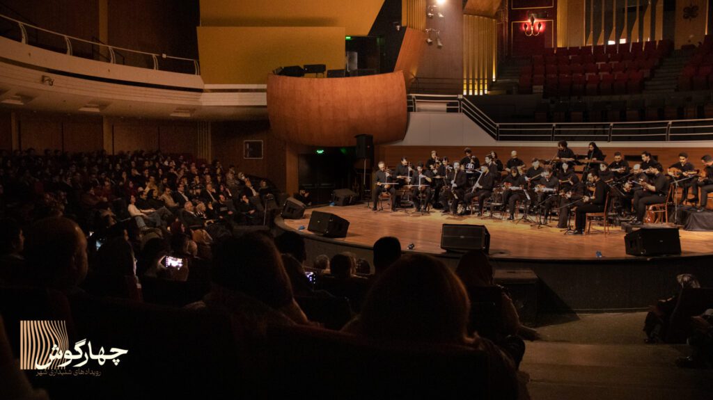 این اجرا با ترکیب متنوعی از سازهای ایرانی شامل تار، بمتار، سهتار، عود، سنتور، کمانچه، نی، قیچک و تمبک توسط اساتید و نوازندگان جوان با سرپرستی هنری حمیدرضا عبادی و مدیریت اجرایی سهیل حسنی سعدی، به روی صحنه رفت و قطعاتی در دستگاه چهارگاه برای مخاطبان اجرا شد.