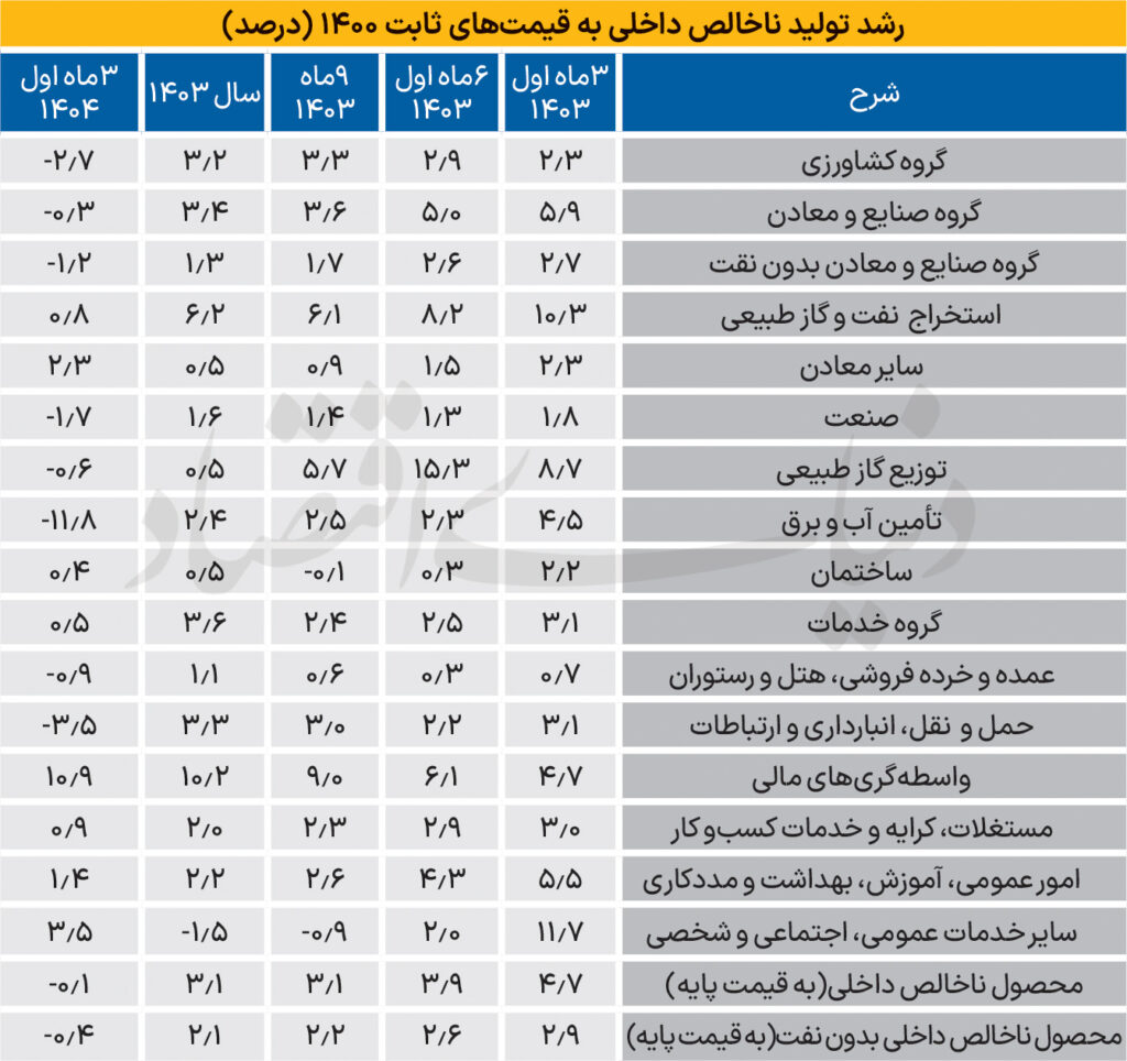 علیرضا کتانی: براساس اعلام مرکز آمار ایران، نرخ رشد اقتصادی کشور بعد از چهارسالونیم منفی شد. براساس این اعلام، نرخ رشد اقتصادی فصل نخست سال 1404، نسبت به فصل مشابه سال قبل، برابر با منفی 0.1درصد بوده است.