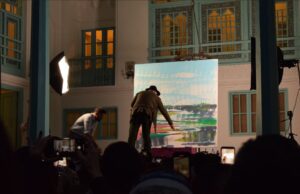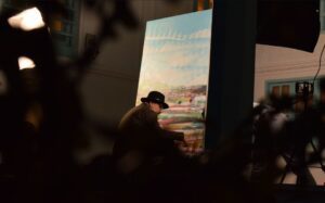 به دعوت خانه فرهنگ گیلان بزرگمهر حسین پور در عصر آدینه با حضور جمع کثیری از مردم فرهنگ دوست استان، قلم مو به دست گرفت و تصویری از شالیزار را بر روی بوم ترسیم و سپس آن را به نشانه تخریب به رنگ خاکستری آغشته کرد.