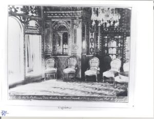تالار وسیع آن که به سبک ایرانی ساخته شده است با ستون‌ها و هزاره‌های آینه‌کاری تزئین شده است و فرش و اثاث اتاق اروپایی است، بدنه‌ی بیرونی عمارت از سنگ مرمر است و نقش‌های برجسته‌ی آبی، سفید و سبز دارد. پله‌های عمارت چنان بلند است که گویی برای غول ساخته شده است و من با تلاش بسیار از آن‌ها بالا می‌رفتم. وقتی کسی در برج زندگی نمی‌کند پنجره‌های عمارت را از بیرون با حصیرهای عریض و مشبک می‌پوشانند. در مدت اقامت شاه حصیرها را بر می‌دارند و از داخل پرده‌هایی سفید با زائده‌های رنگین می‌آویزند.