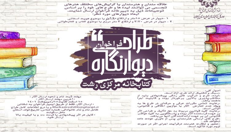 فراخوان طراحی دیوارنگاره کتابخانه مرکزی رشت با سبک و تکنیک طراحی آزاد از سوی اداره کل کتابخانههای عمومی استان گیلان، منتشر شد.