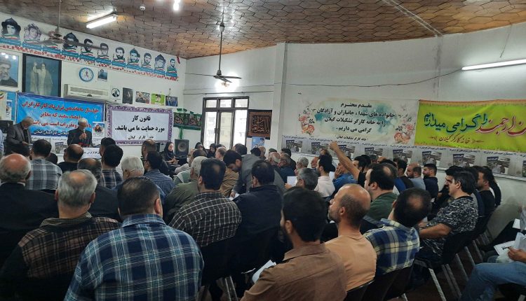 همزمان با اول ماه مه روز جهانی کارگر، تعدادی از کارگران و بازنشستگان جامعه کارگری گیلان در اعتراض به وضعیت معیشتی و دستمزد خود در مقابل تشکیلات خانه کارگر گیلان تجمع کردند.