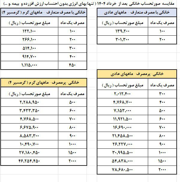 افزایش چند برابری قبوض برق مشترکین خانگی و تجاری درحالی‌ست که سالی یک بار وزارت نیرو به ابلاغ افرایش تعرفه‌ها در مناطق مختلف گرمسیری و سردسیری اقدام می‌کند. با این حال از مهرماه سال گذشته تا خرداد سال ۱۴۰۴ تعرفه‌های برق دو بار شامل افزایش قیمت شدند.