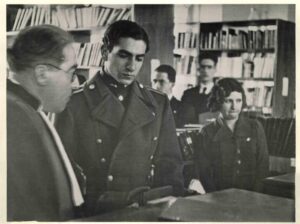 در بازدید ولیعهد از کتابخانه، به همراه وزیر معارف وقت