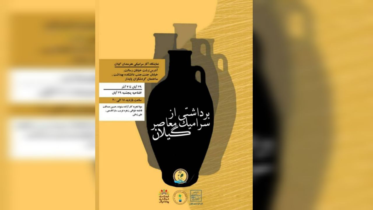 نمایشگاه آثار سرامیکی هنرمندان گیلان، با عنوان “برداشتی از سرامیک معاصر گیلان” امروز پنجشنبه ۲۹ آبان در رشت – خیابان رسالت – خیابان جنت – جنب دانشکده بهداشت – ساختمان گردشگران پایدار، گشایش پیدا کرد.
