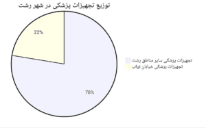 بررسیهای گذشته و مقایسه آن با تعداد پزشکان در خیابان نواب نسبت به شهر رشت که حدود ۱۵.۳۵% است نشان میدهد که درصد تجهیزات پزشکی رشت بیشتر از درصد پزشکان مستقر در این منطقه است. این ممکن است به دلیل وجود سایر مراکز پزشکی مانند بیمارستانها، مراکز تصویربرداری، آزمایشگاههای تخصصی یا سایر مراکز درمانی در این مکان است.