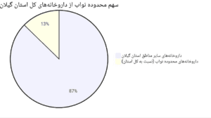 طبق همین آمار نسبت داروخانههای خیابان نواب و مسیرهای اطراف آن به کل شهر رشت ۳۴.۴% و این نسبت به کل گیلان حدود ۱۲.۷ درصد است. در واقع، حدود ۱۳% از داروخانههای کل استان و به تعبیر دیگر بیش از ۱/۳ داروخانههای رشت در یک محدوده خاص قرار دارد. (۲)