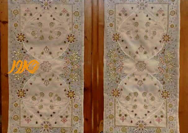 عالیه صادقی، مدرس رشتیدوزی نیز با اشاره به این مهم که در دوخت این آثار از ابریشم طبیعی رنگآمیزی شده با رنگهای گیاهی، استفاده شده، گفت: تکنیک این چهار پردهی رشتیدوزی ساده و پارچهی مورد استفاده نیز پارچهی رومبلی به نام شانل است.