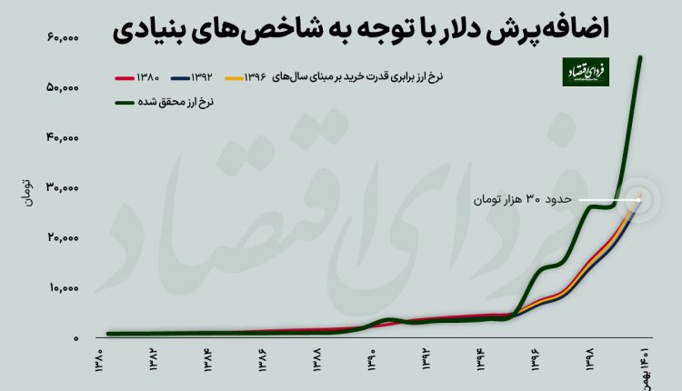 جدیدترین آمارها نشان میدهد نرخ تورم نقطهای سالانه در بهمن ماه ۱۴۰۱ در مقایسه با ماه قبل با افزایش ٢.۱ واحد درصدی به ۵۳.۴ درصد رسیده است. حجم نقدینگی در پایان آبان ماه سال ۱۴۰۱ به رقم ۵۸۰۶ هزار میلیارد تومان رسید که در مقایسه با مدت مشابه سال قبل ۳۴.۵ درصد رشد داشته است و از کل نقدینگی کشور، ۲۳.۵۴ درصد به صورت پول (به معنی دو وضعیت اسکناس و سپردههای دیداری) وجود دارد و باقی تحت عنوان شبهپول (شامل سپردههای قرضالحسنه، کوتاهمدت و بلندمدت) قرار گرفته است. پولی که آماده هجوم به بازاری برای کسب سود در یک شرایط تورمی است. بنابر این هر چند متغیرهای کلان اقتصادی میتوانند عاملی برای افزایش نرخ ارز در کشور باشند اما بررسی دقیقتر نشان میدهد که این متغیرها نیز به تنهایی پاسخگوی قیمت فعلی اسکناس آمریکایی نیستند؛ جایی که متغیرهای بنیادی، نرخ دلار بیش از ۳۰ هزار تومان را پشتیبانی نمیکنند و در بدبینانهترین سناریو نرخهای ۴۰ تا ۴۲ هزار تومانی برای این ارز برآورد میشود.